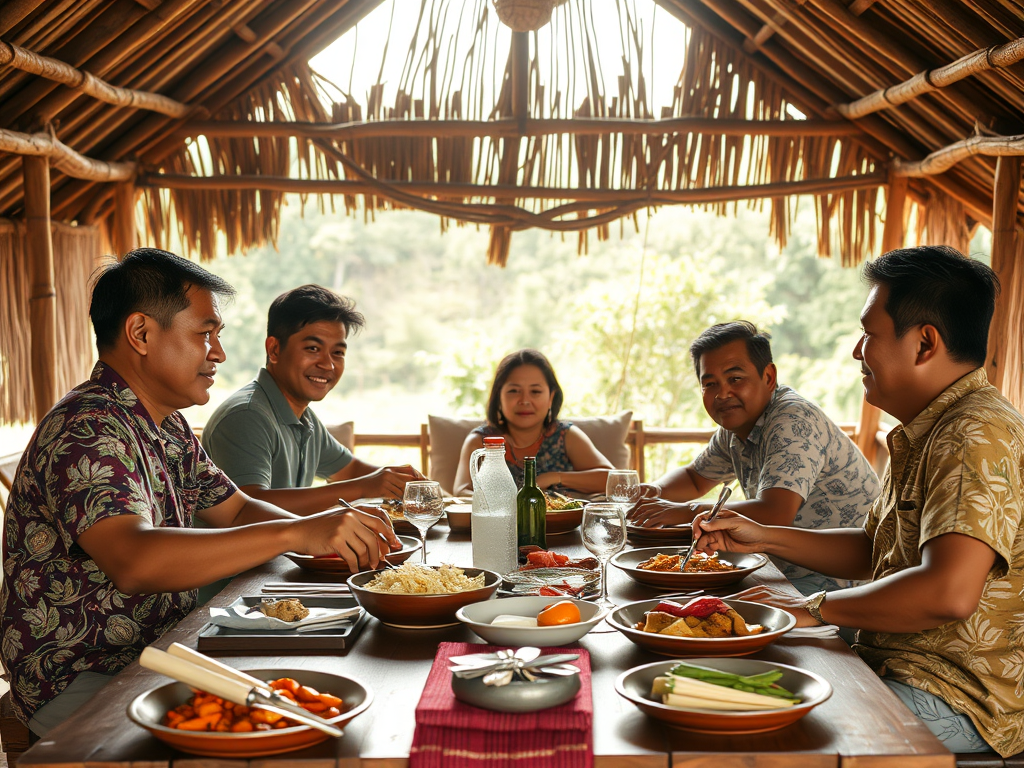 We finished our dinner, and my family helped with the cleanup while my friends remained alone in the hut.