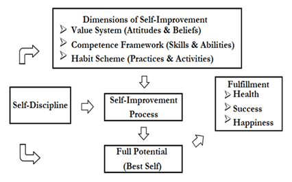 The book, whether bearing the old or new title, encapsulates the interrelationships among these categories and self-discipline into a framework, illustrating how their synergy yields an effective process of self-improvement that leads to the attainment of one’s full potential.