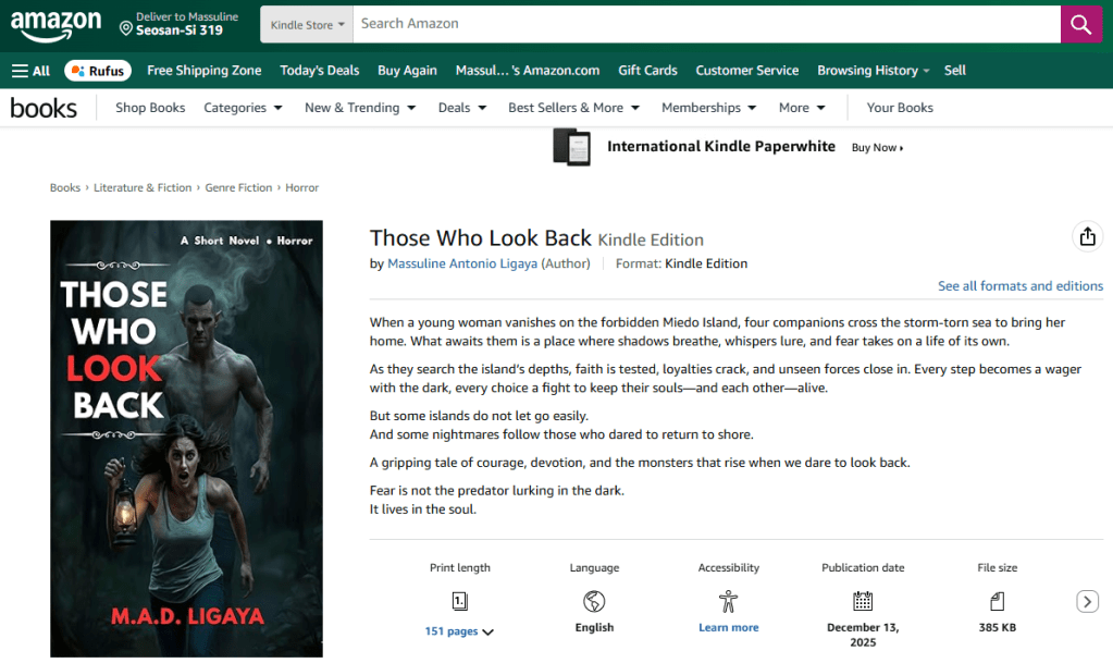 This is my newest book, fiction-horror. This is based on my short Filipino novel “Lingon.”