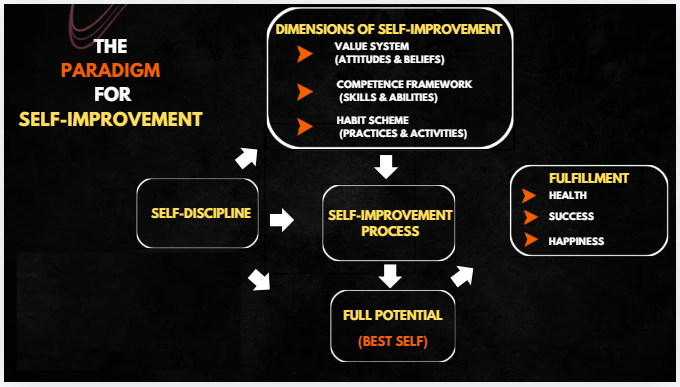 Fulfillment (characterized by achieving health, success, and happiness) is presented as the outcome of the self-improvement process. When you embrace personal growth and development, your ultimate goal becomes realizing your full potential.